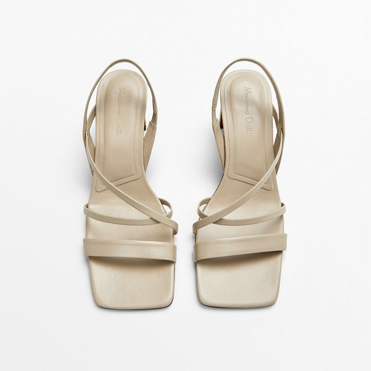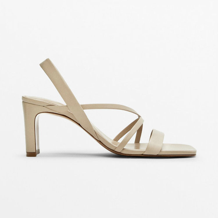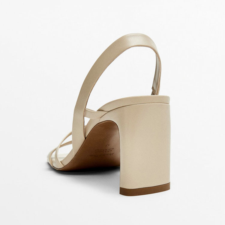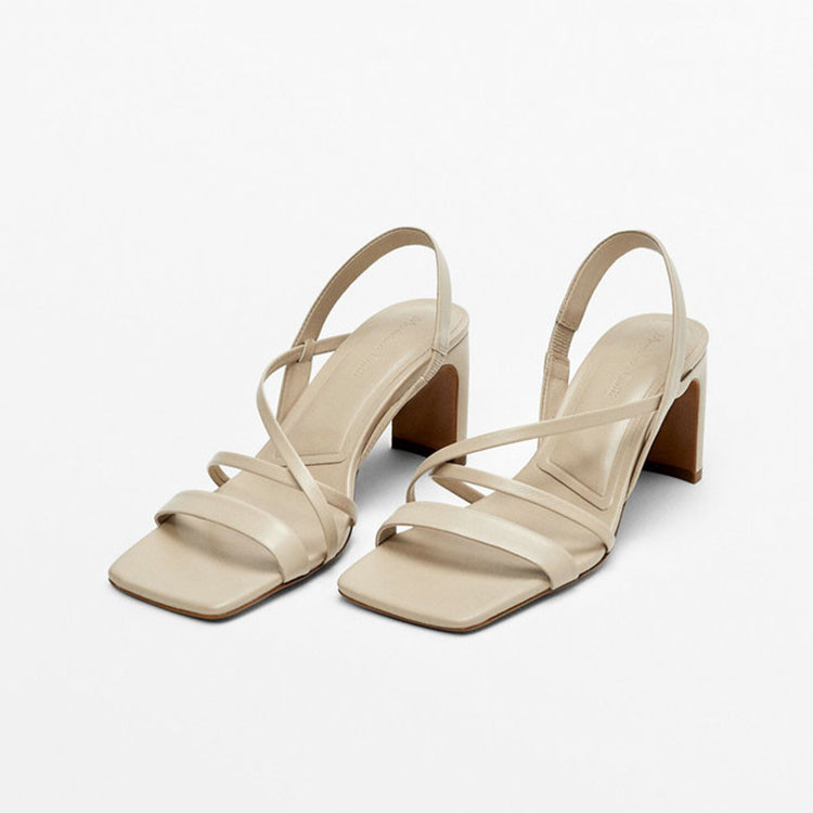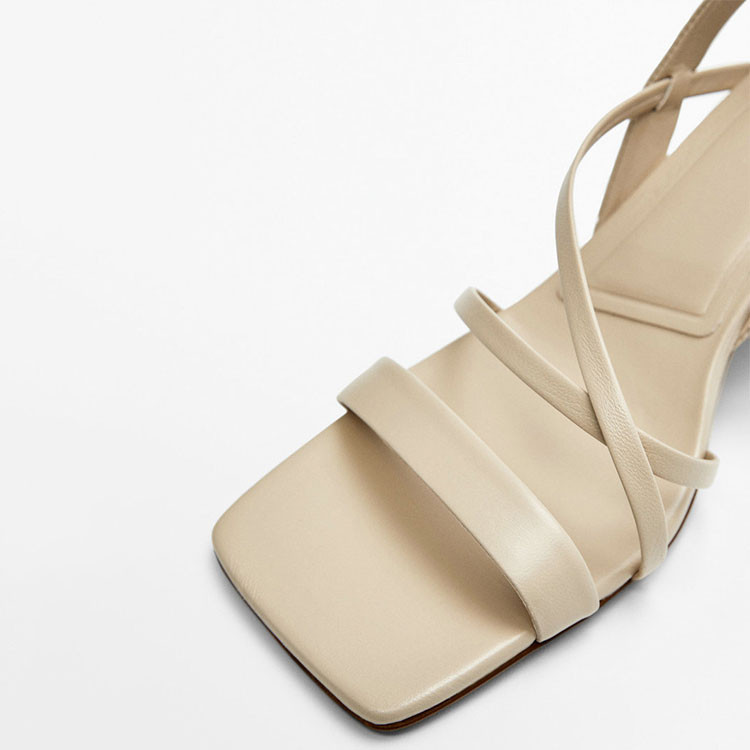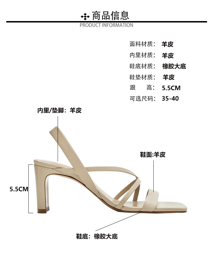 DANDT女鞋真皮一字帶涼鞋粗跟高跟方頭露趾氣質法式小眾(24 APR TA) 外銷女鞋