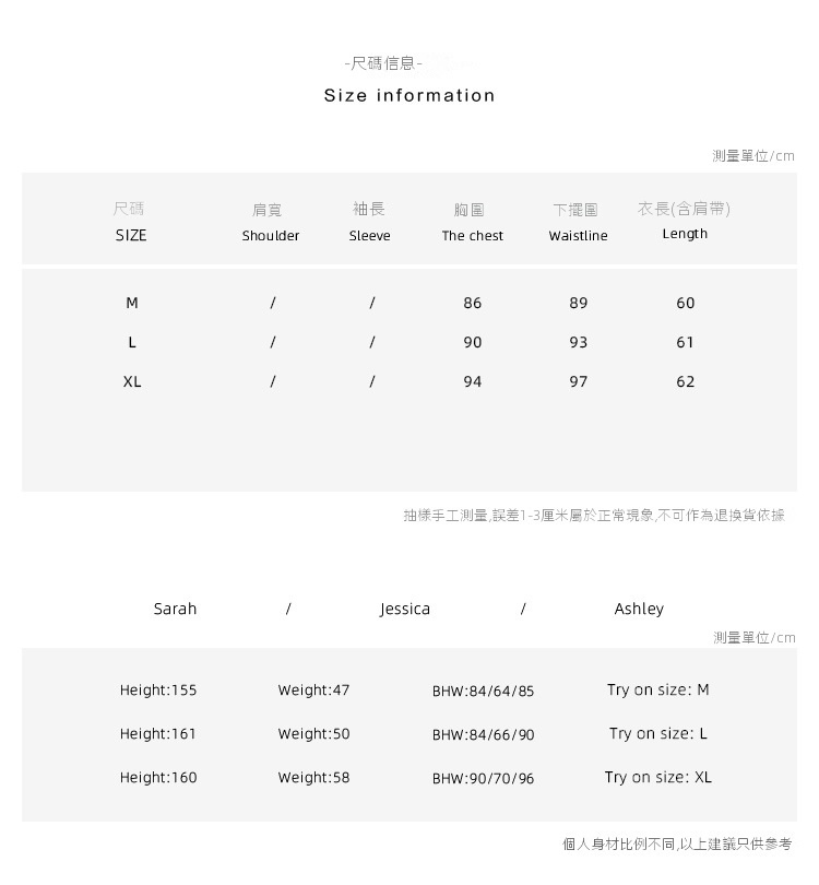 尺碼對照參考表