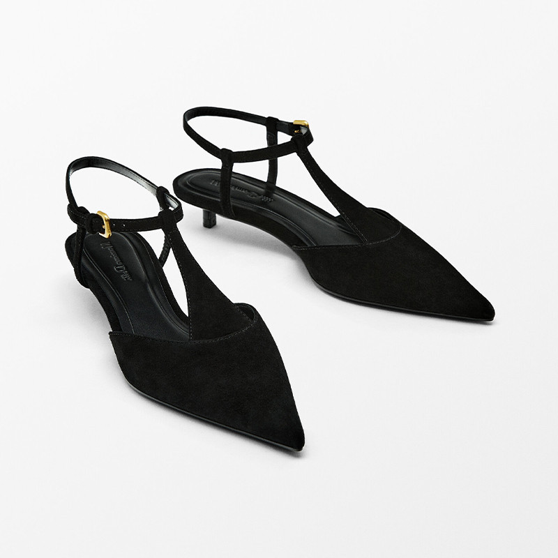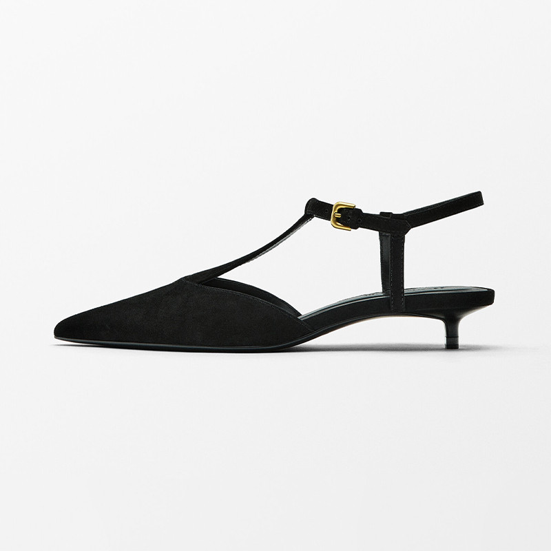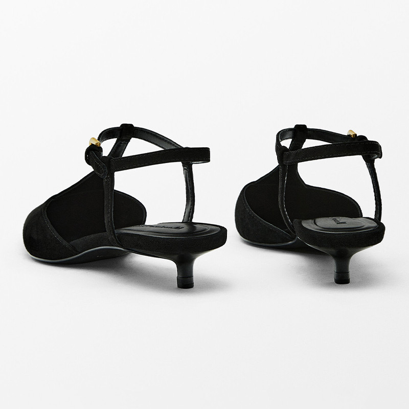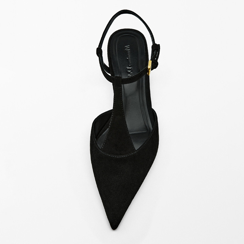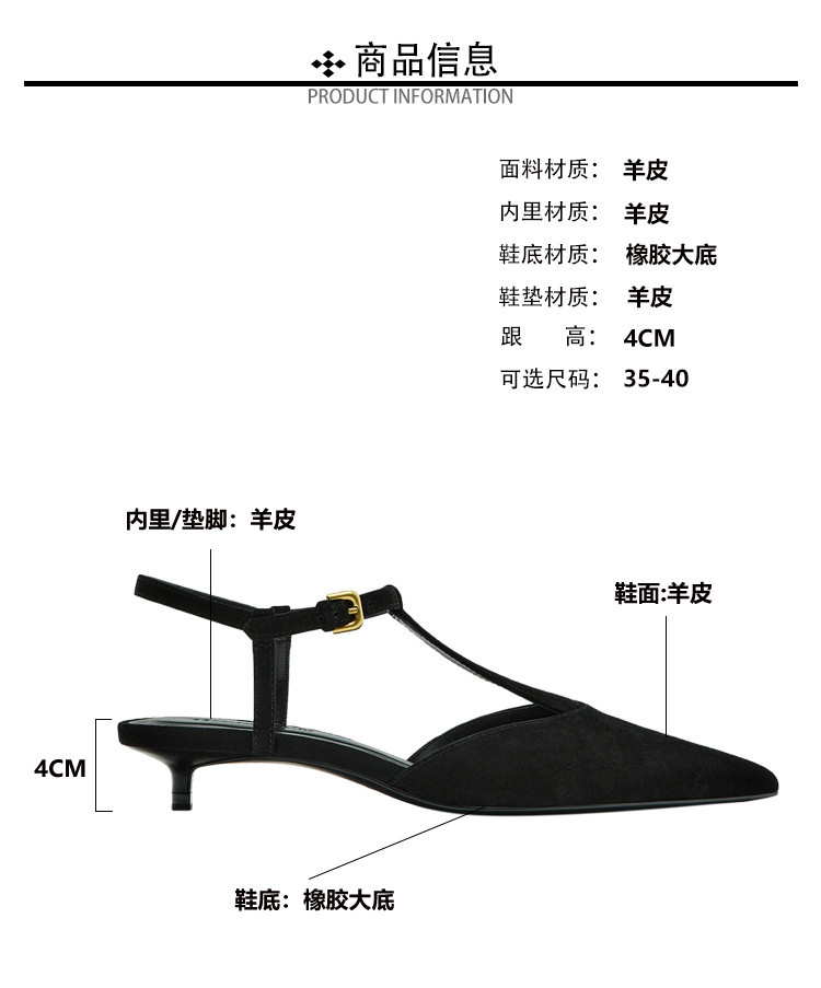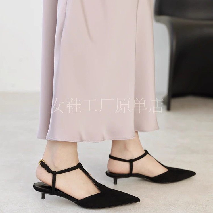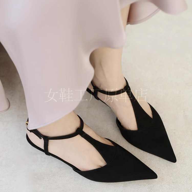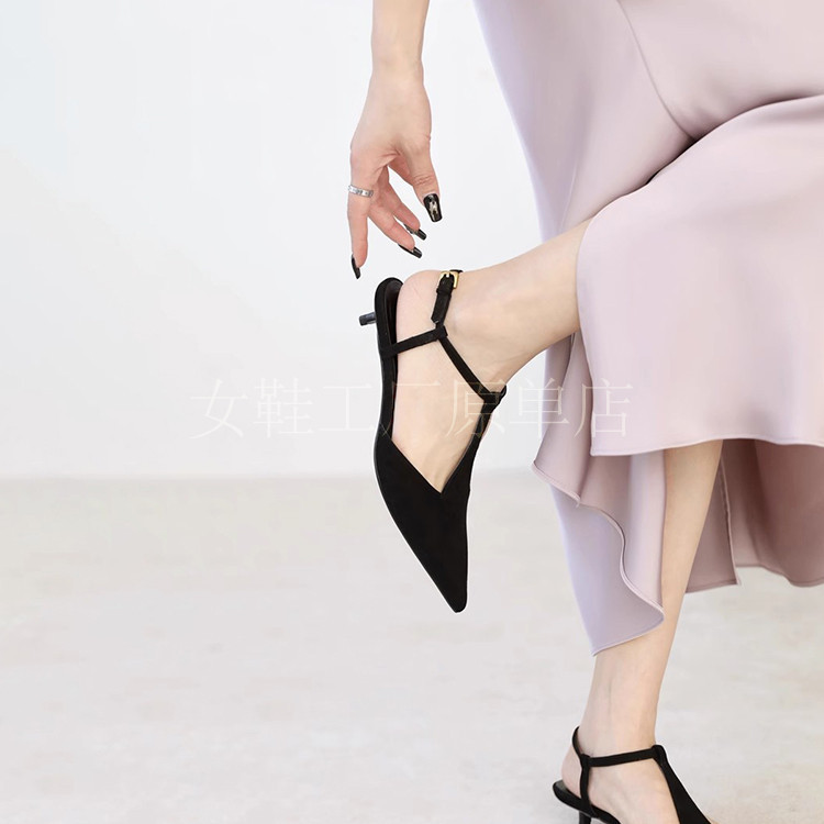 DANDT女鞋涼鞋尖頭包頭高跟絨面后空露跟時裝單鞋小貓跟(24 APR TA) 外銷女鞋